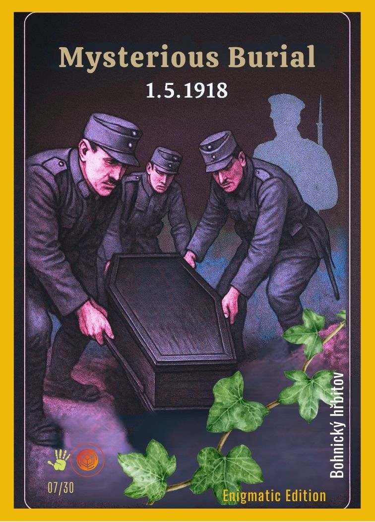 Temný balíček plný tajemství z Bohnického hřbitova. Uvnitř najdete sadu magnetek a sběratelských kartiček se symboly a motivy hřbitova — vždy jiná kombinace, vždy kus příběhu.