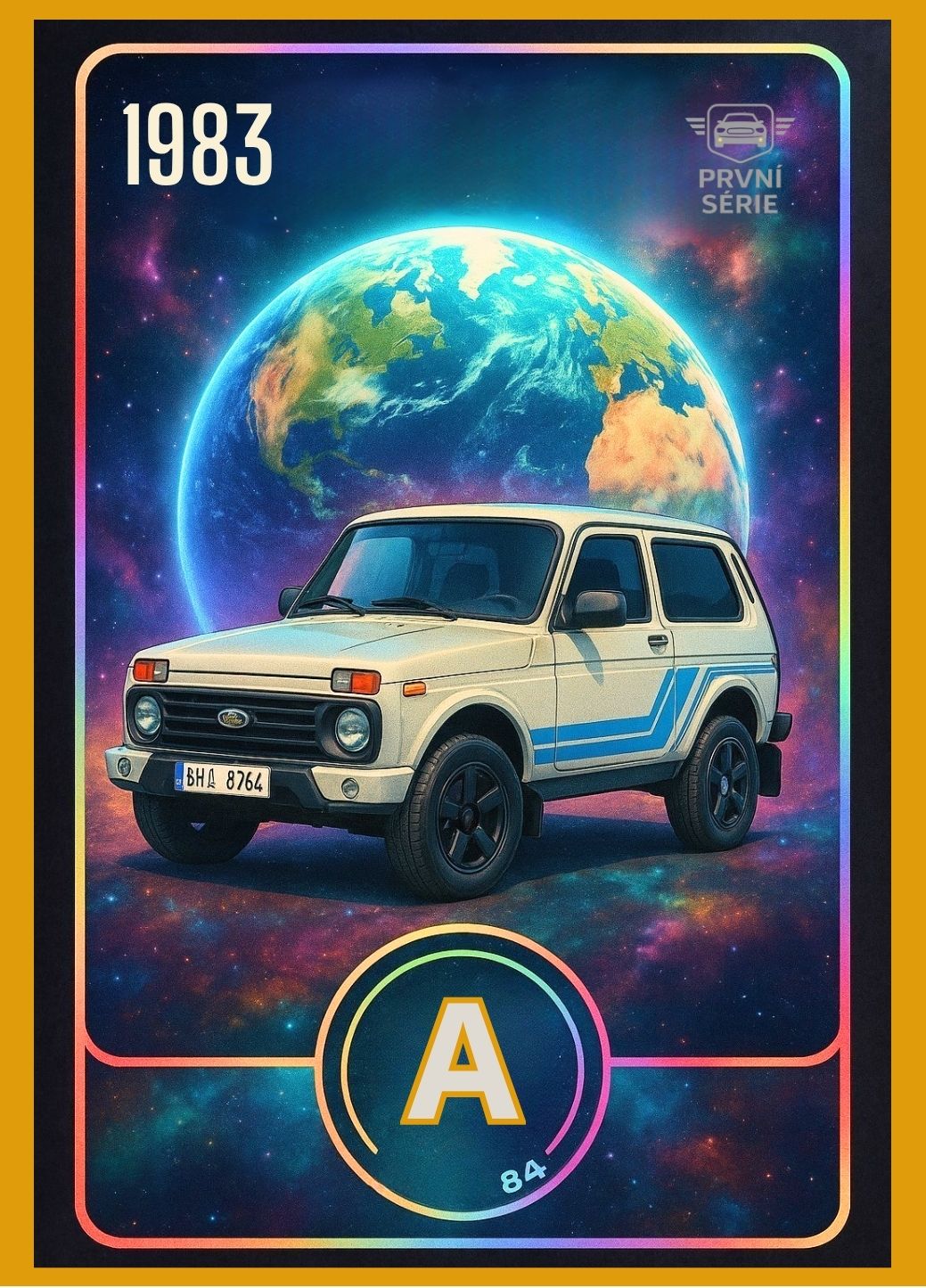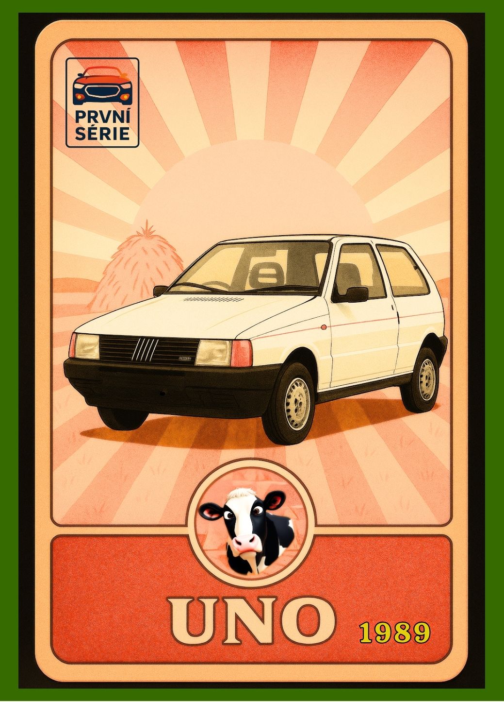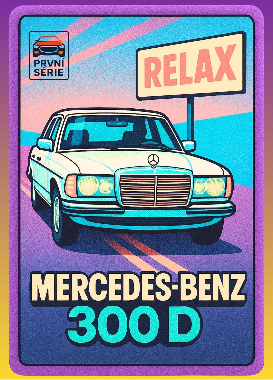 Každá karta zachycuje legendární vůz z nezapomenutelných scén, kde hrála auta nejen dopravní, ale i symbolickou roli – svobodu, styl, dobu i charakter svých řidičů.